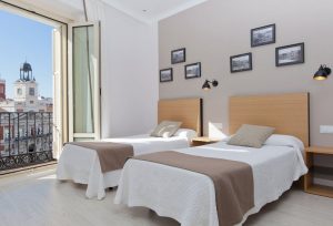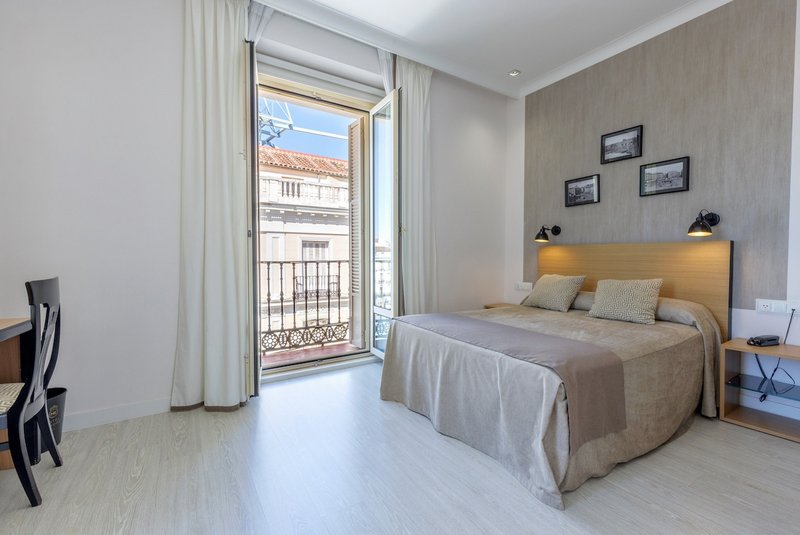 These rooms are perfectly equipped and decorated in warm tones to provide the greatest well-being for our guests. Recently renovated, they have a full bathroom, hairdryer, magnifying mirror, radio-TV with international channels, direct telephone, free safe, refrigerator, heating and air conditioning, free Wi-Fi, room service, multi-entry plugs, HDMI connectors, kettle with welcome service and amenities. In addition, they enjoy unbeatable views of Puerta del Sol.