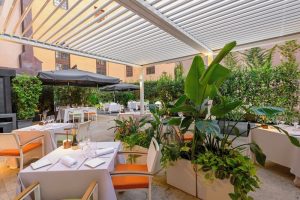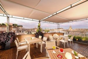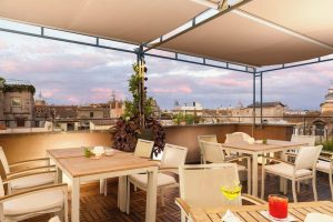 During the summer season, the restaurant moves to the internal courtyard and the bar moves to the panoramic roof terrace weather permitting. Our chef chooses 0 km products and offers tasty “Roman” recipes, preferring products of the season.