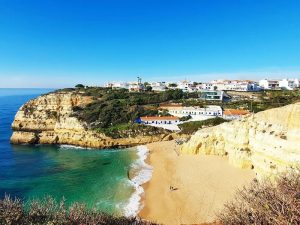This scenic route is situated in Carvoeiro area and offers a string of notable stops at Benagil and Carvalho beaches, among others. The walk takes place along the top of coastal cliffs defined by deeply sculpted shapes and beautiful ocher and golden Cliffs.